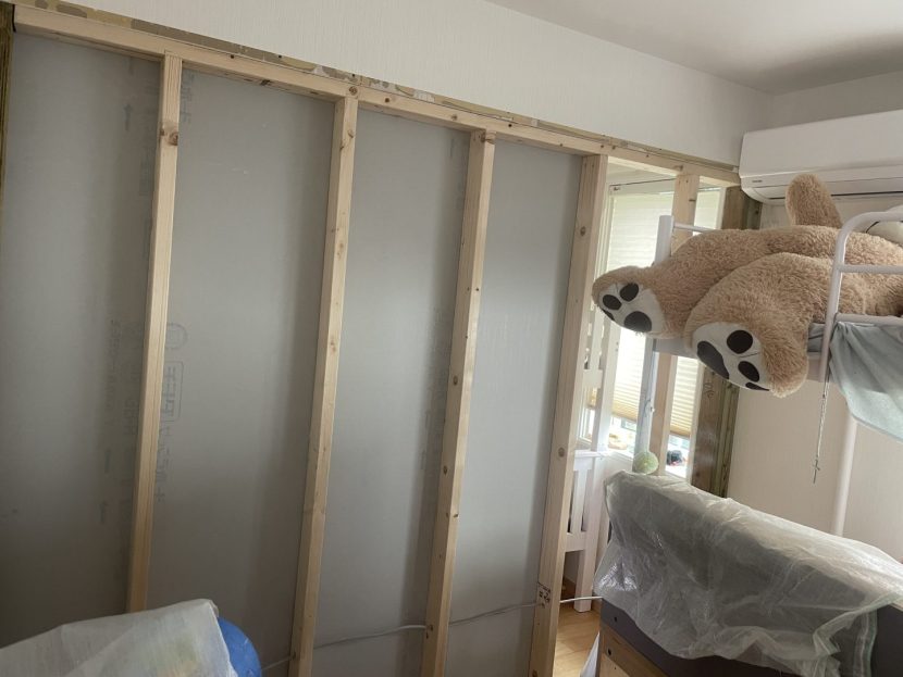 今回の施工内容:子ども部屋建具、枠撤去・壁増設・収納建具の撤去